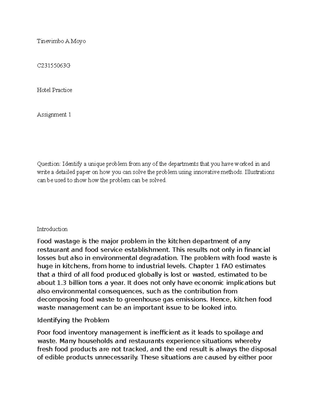 Assignment food - Tinevimbo A Moyo C23155063G Hotel Practice Assignment ...