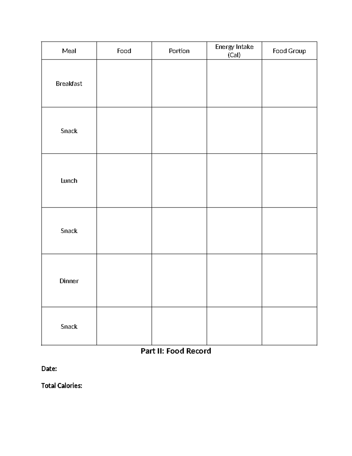 Food Diary Discussion Template 2021 - Nutrition Assignment: Food Diary ...