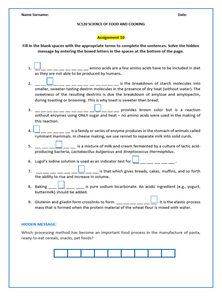 Food Science Assignment: Fill-in-the-Blanks | PDF
