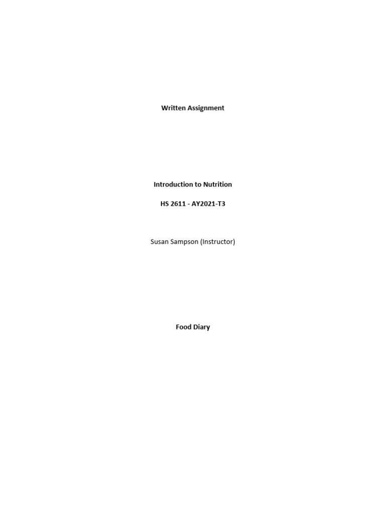 Nutrition. Written Assignment1 | PDF | Meal | Food And Drink Preparation