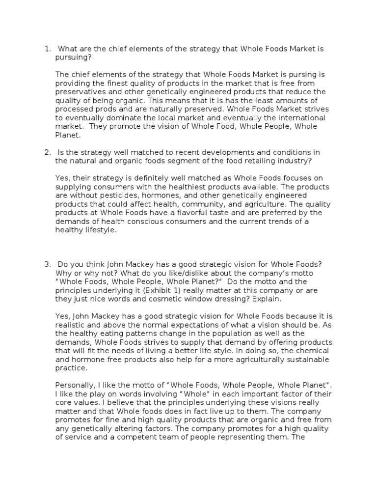 Whole foods case study - 818 Words | Free Essay Example on GraduateWay