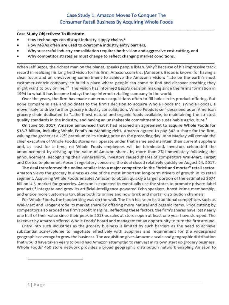 Case Study 1 - Amazon Acquires Whole Foods | PDF | Retail | Grocery Store