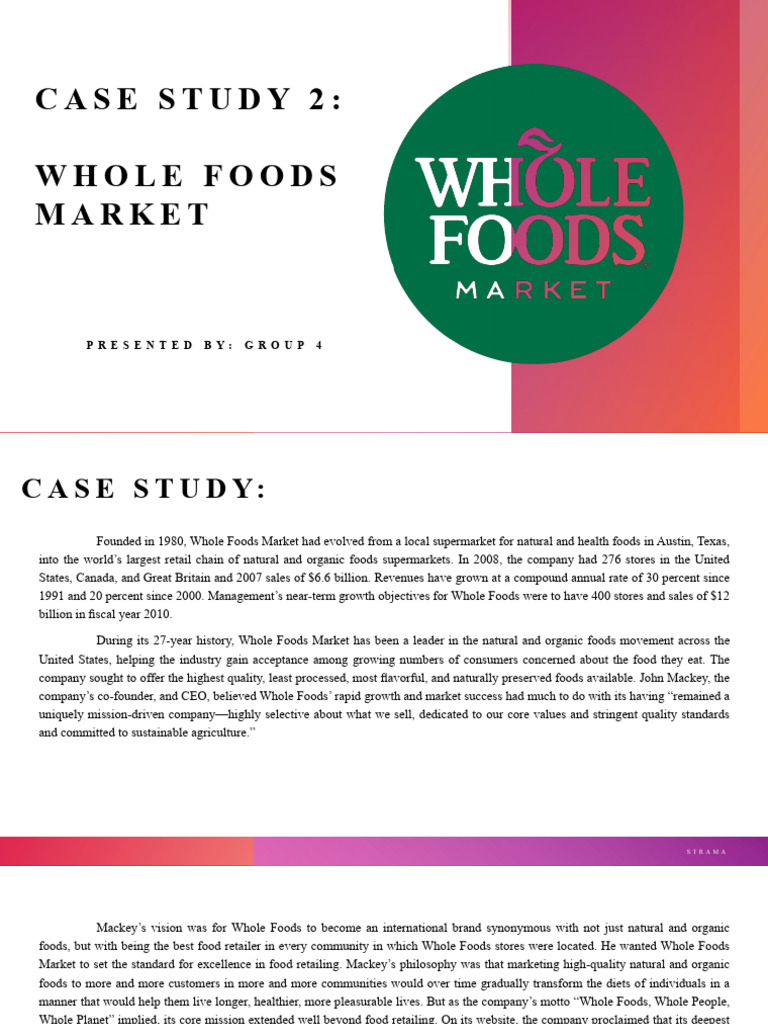 Case Study 2 Whole Foods Market Group 4 | PDF | Whole Foods Market | Retail