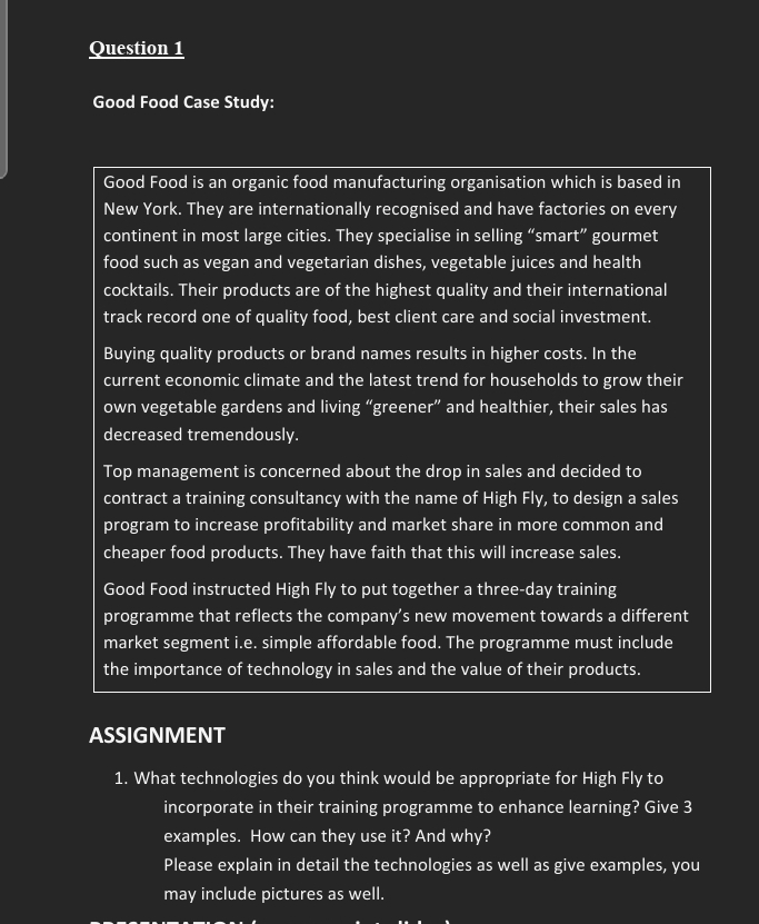 Solved Question 1Good Food Case Study:Good Food is an | Chegg.com