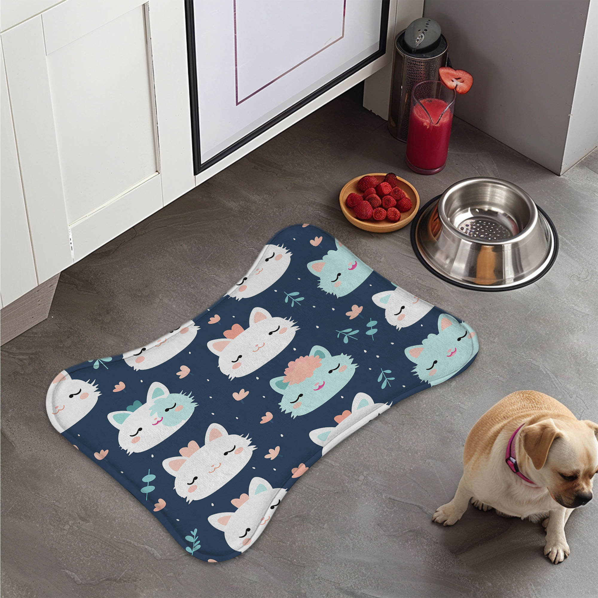 MentionedYou Sweet Kitten Patterns - 1 Piece Bone Shape Feeding Mat ...