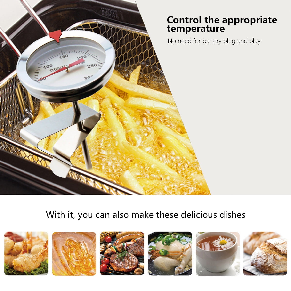 Pompotops Deep Frying Pyrometer Instant Read, Stainless Steel Dial ...