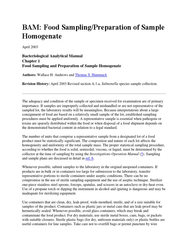 BAM: Food Sampling/Preparation of Sample Homogenate | PDF | Fruit ...