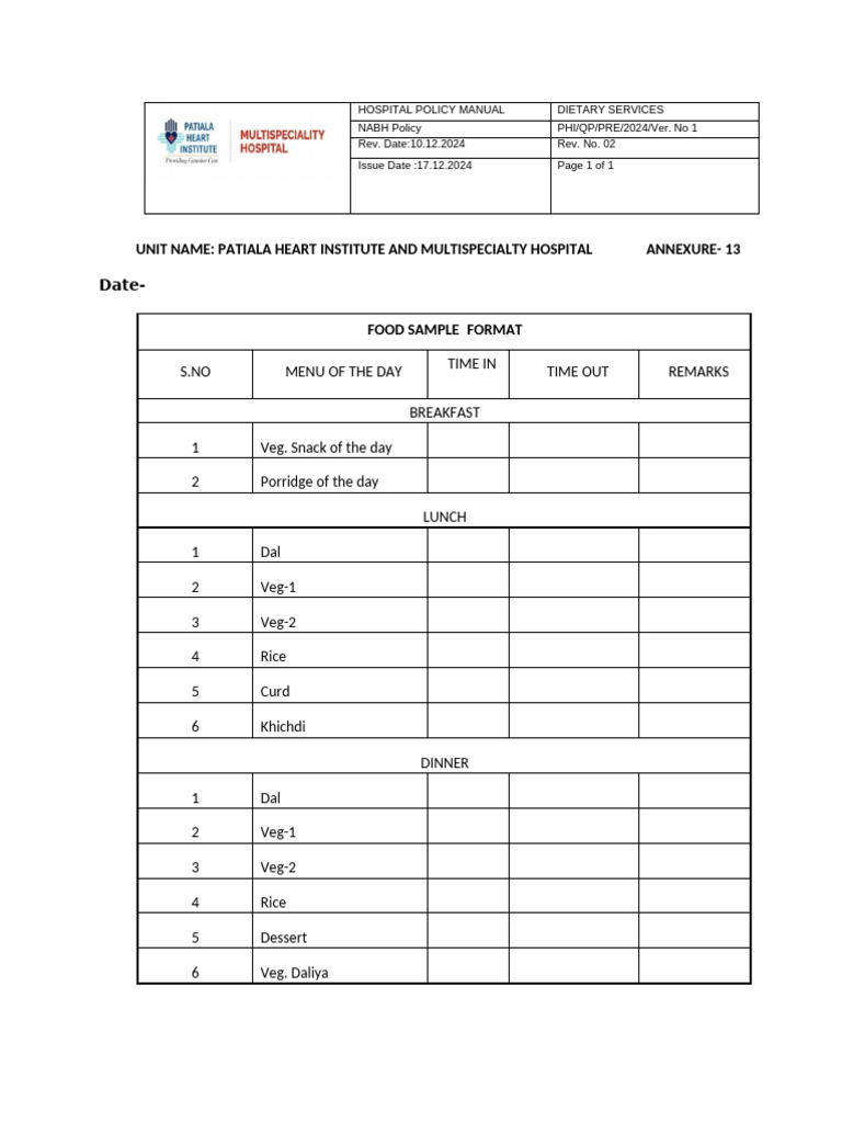 Food Sample Format | PDF