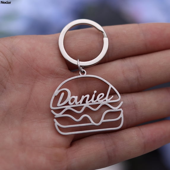 Custom Name Hamburger Keyring Stainless Steel Simulation Food Pendant ...