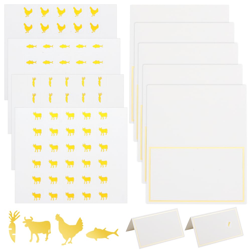 240pcs 4 Styles Gold Meal Stickers 1 Inch with 60pcs Blank Table Place ...