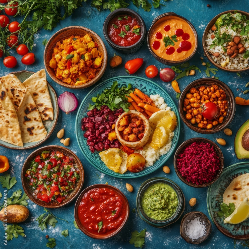 global food diversity, diverse world cuisine displayed elegantly on a ...