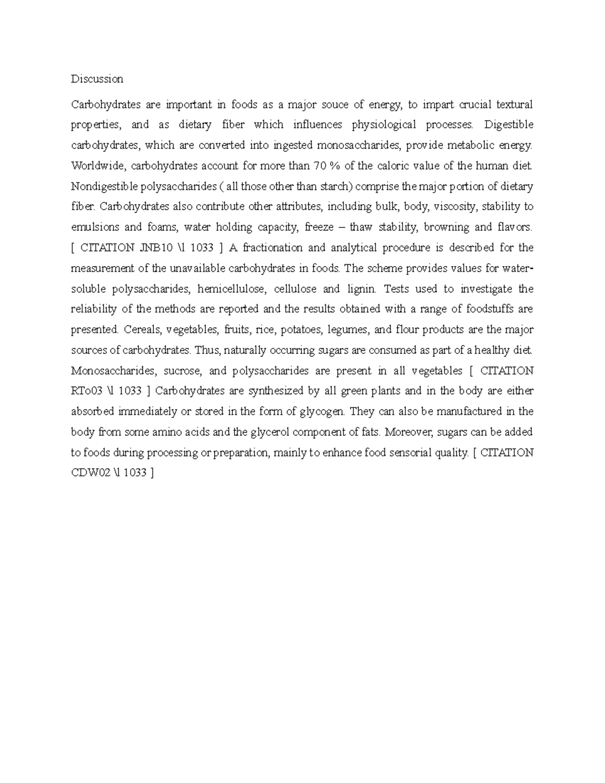 Discussion Carbo - example lab report - Discussion Carbohydrates are ...
