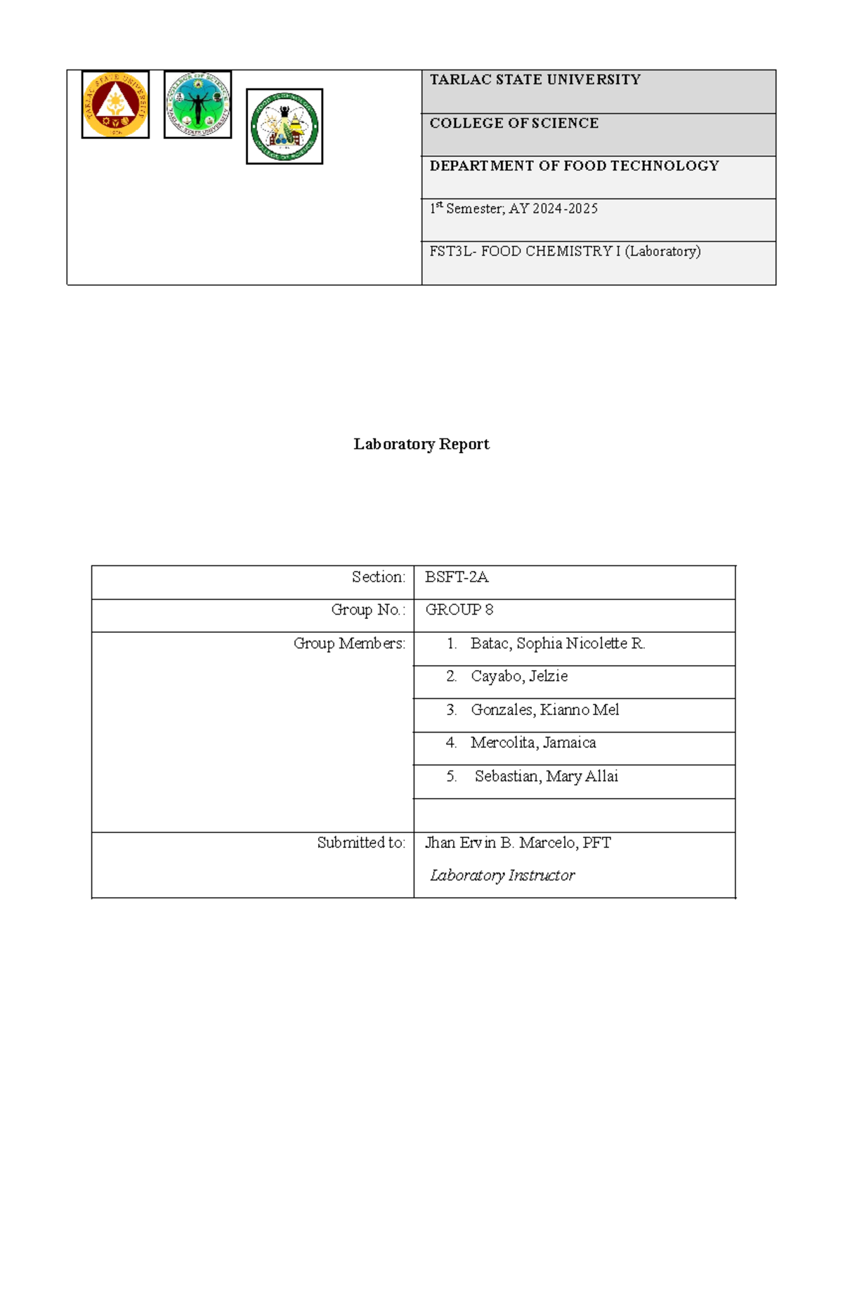 FOOD-CHEM-LAB-ACT-5- Group-8 2 - COLLEGE OF SCIENCE DEPARTMENT OF FOOD ...