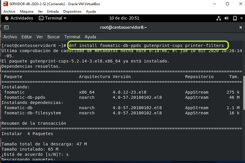 INSTLACION DE SERVICIO DE IMPRESION EN SERVIDOR CENTOS-8