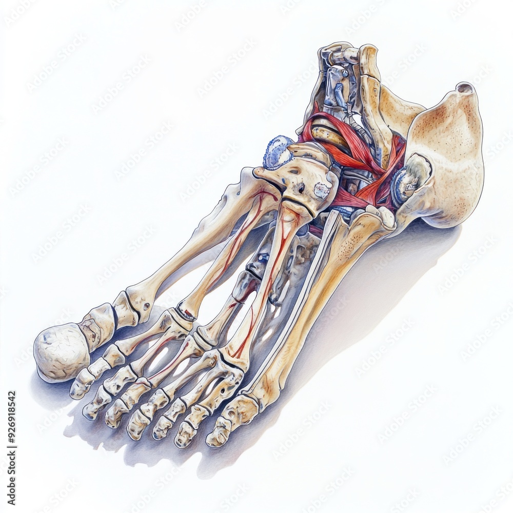 Detailed anatomical illustration of a human foot showcasing bones ...