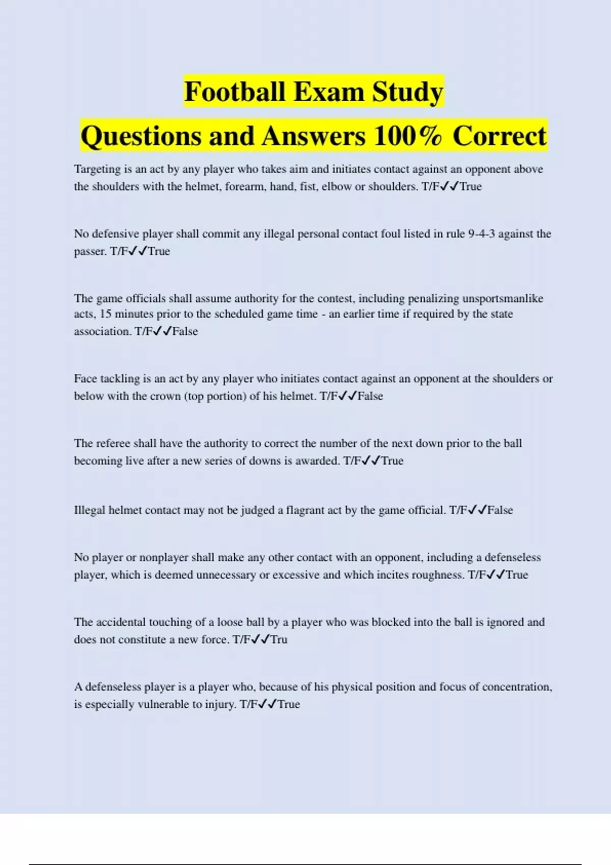 Football Exam Study With Questions and Answers 100% A+ Updated For ...