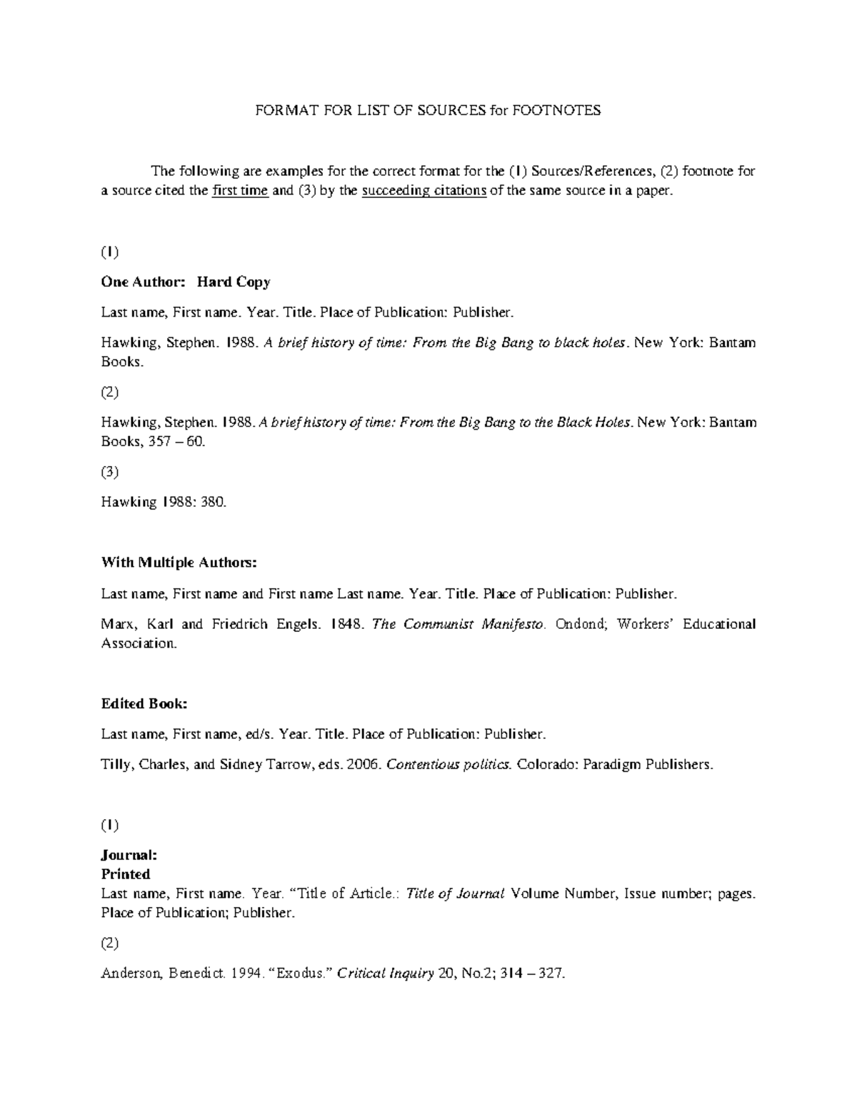Footnotes (FN) & Bibliography (B) Examples - Chicago Citation & Style ...