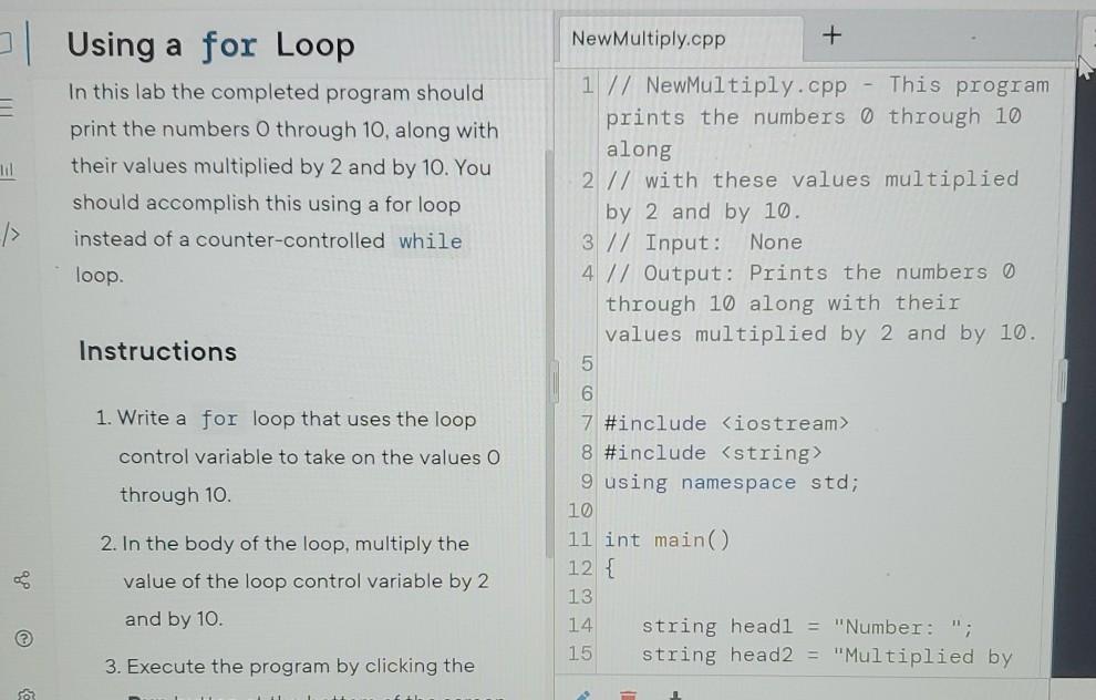 Solved New Multiply.cpp Using a for Loop + til In this lab | Chegg.com