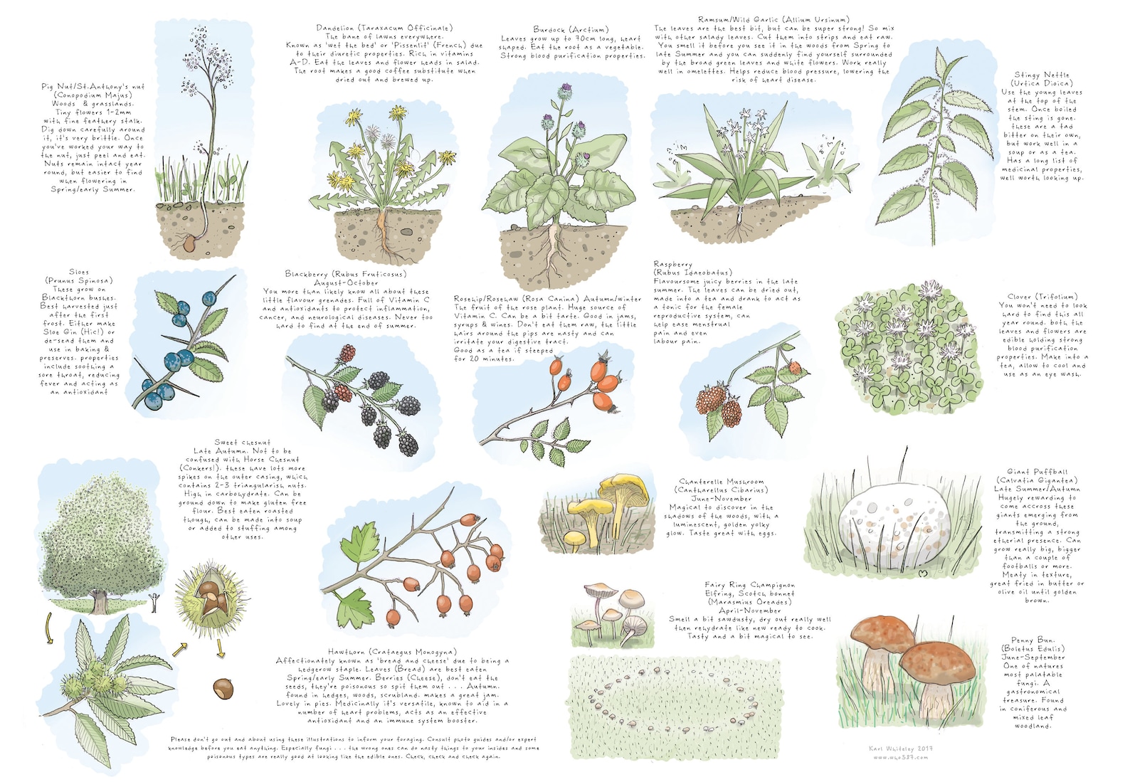 Foraging Guide A3 Sized Art Print (450/320mm) - Foraging Illustration ...