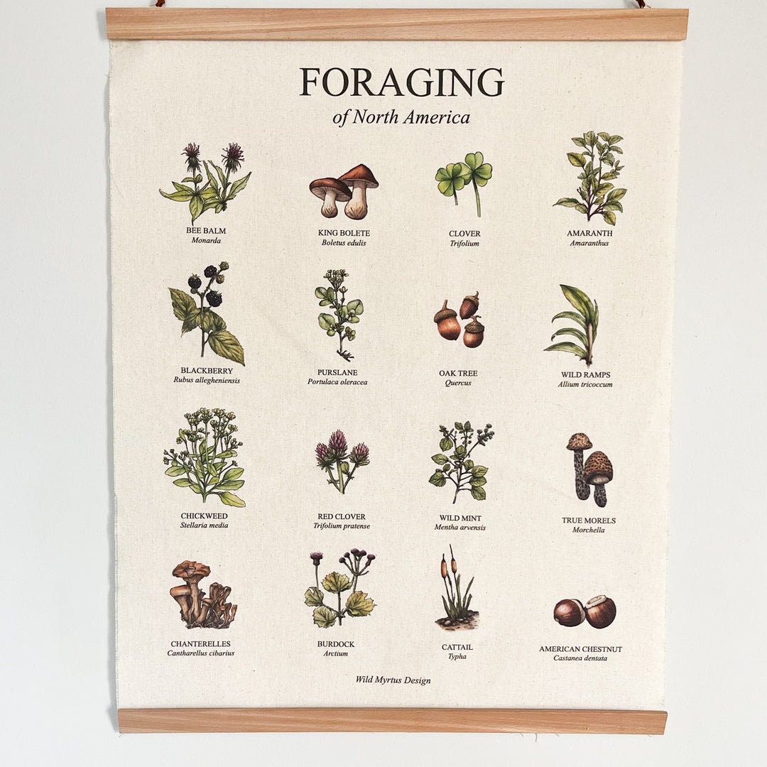 Foraging Canvas Hanging Wall Art Field Guide of North American Forest ...