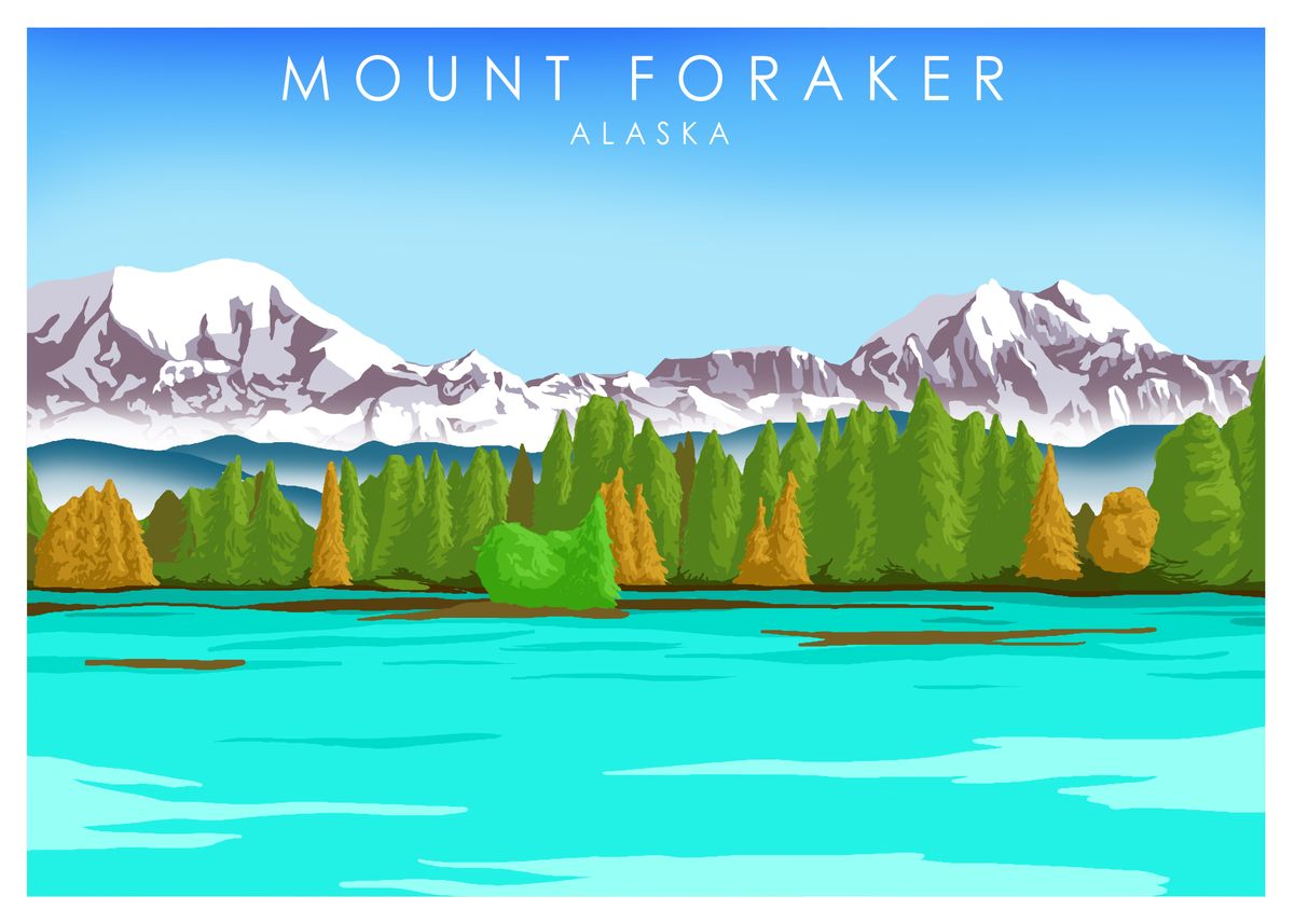 'Mount Foraker' Poster, picture, metal print, paint by OmegaArt | Displate