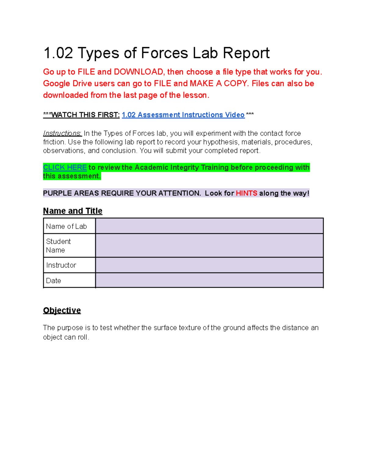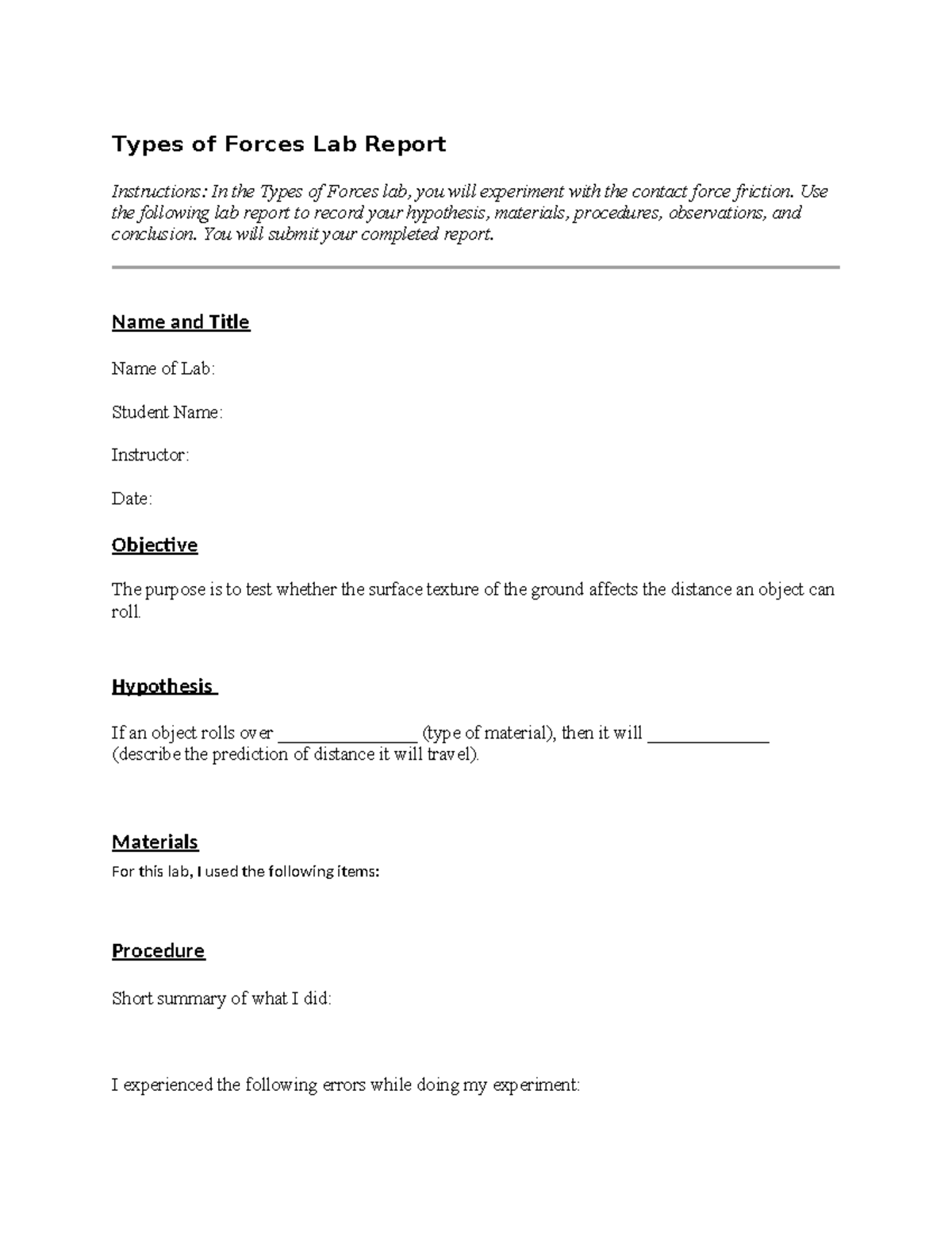 Types of forces lab report - Types of Forces Lab Report Instructions ...