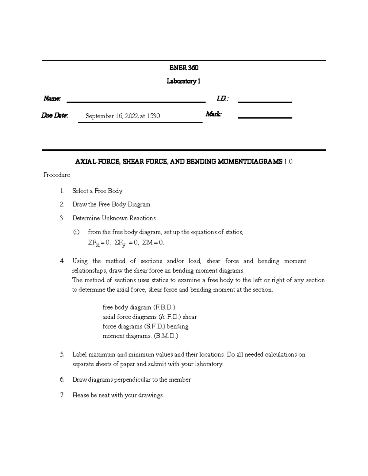 ENER360 Lab 1 F22 - Axial forces, shear forces and bending moment ...