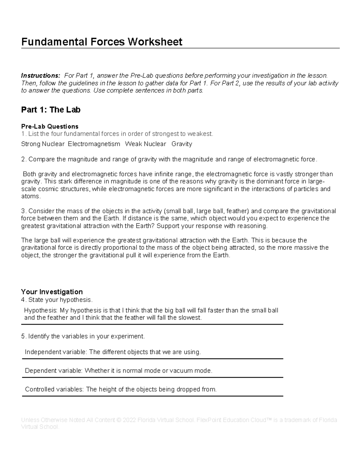 Fundamental Forces Lab Worksheet - 01 06 Got It Right - Studocu