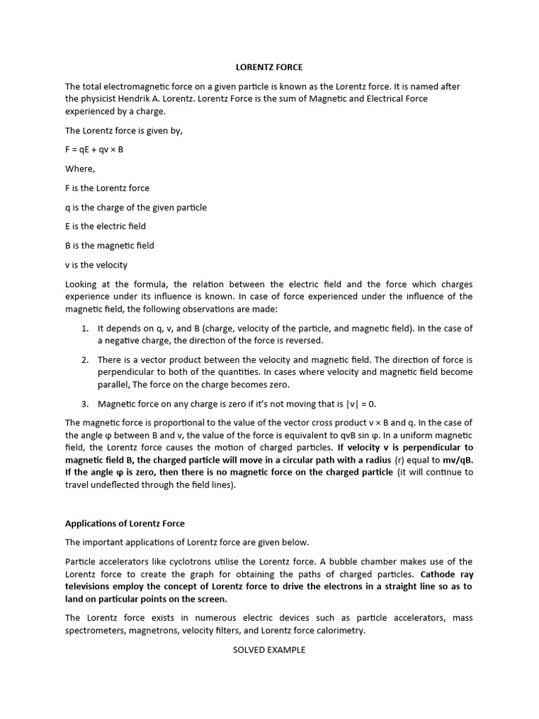 Lorentz Force Notes | PDF | Force | Magnetic Field