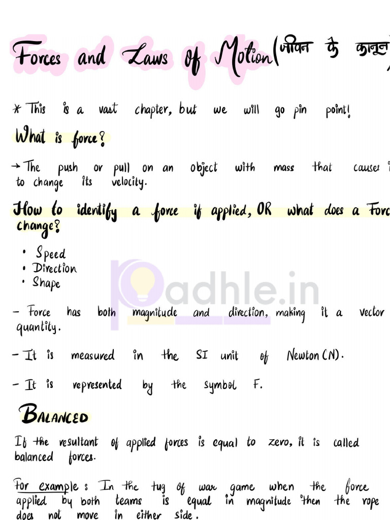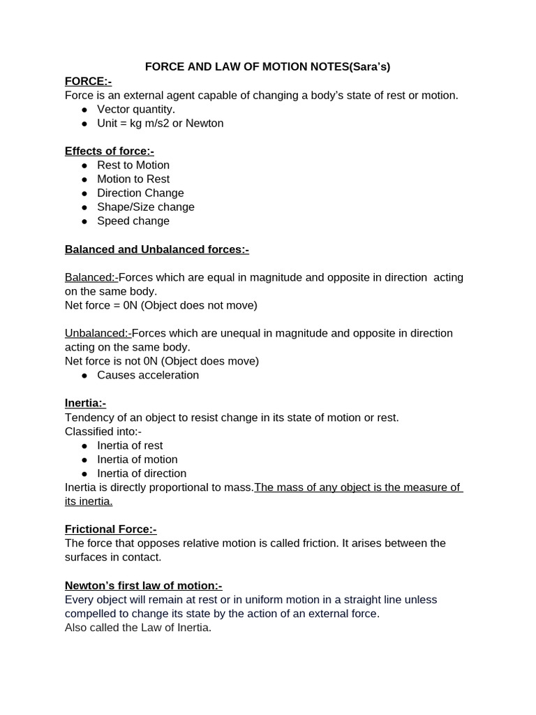 SOLUTION: Force and motion full detail handwritten notes pdf - Studypool