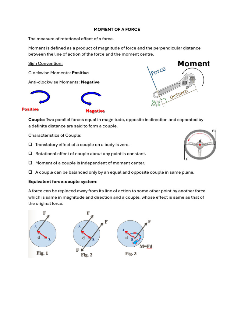 MOMENT OF A FORCE Notes | PDF | Angle | Force