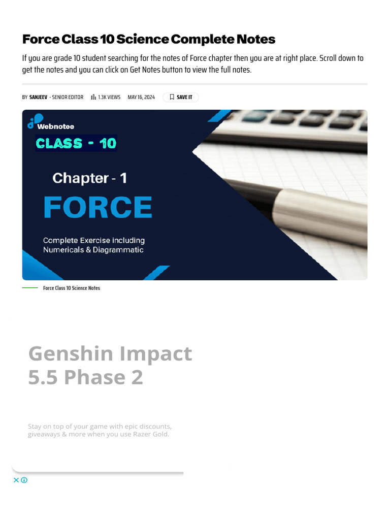 CLASS 10 CH-1 FORCE NOTES | PDF