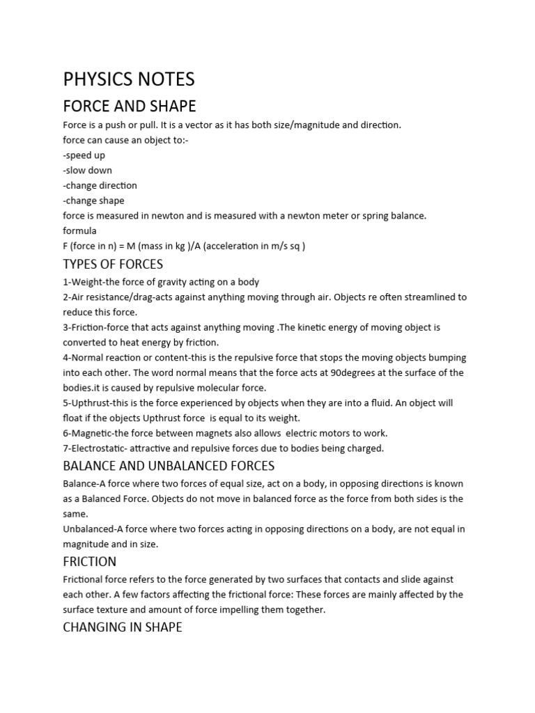 PHYSICS NOTES forces and shape | PDF | Force | Elasticity (Physics)