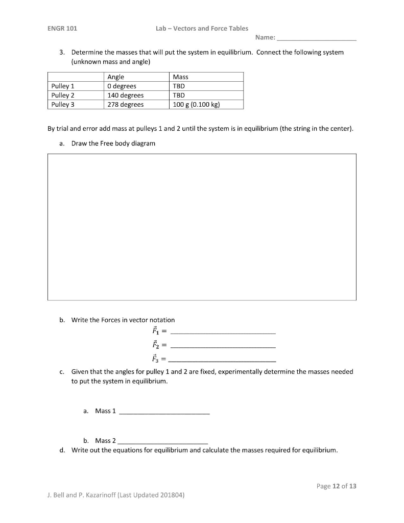 ENGR 101 Lab - Vectors and Force Tables Name: 3. | Chegg.com