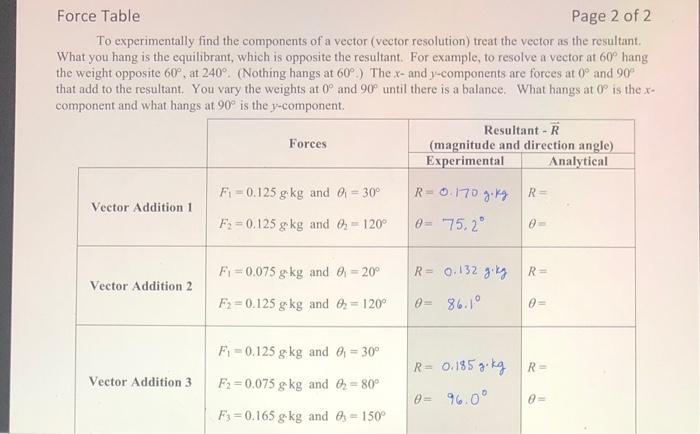 Solved Experiment No. 2 Force Table and Vector Addition of | Chegg.com