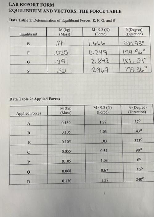 Understanding Equilibrium and Vectors: A Force Table Lab | Course Hero