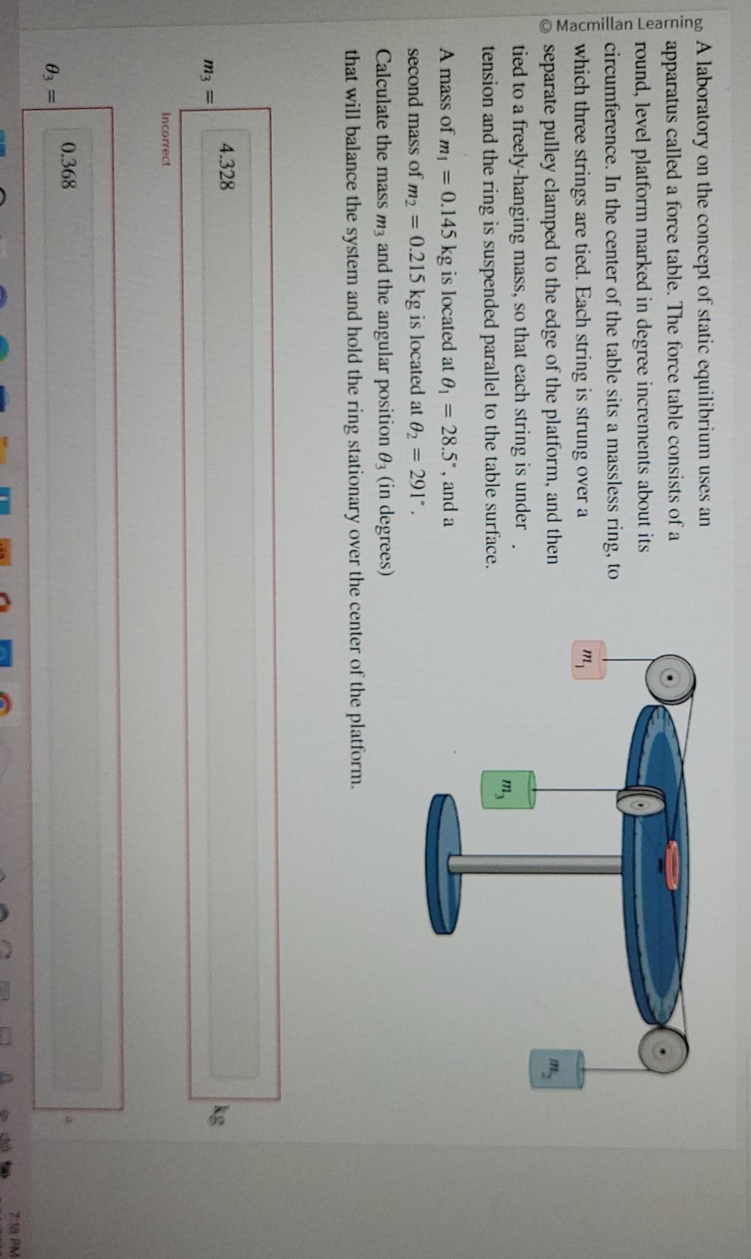 Solved A force table is an apparatus used in physics labs | Chegg.com