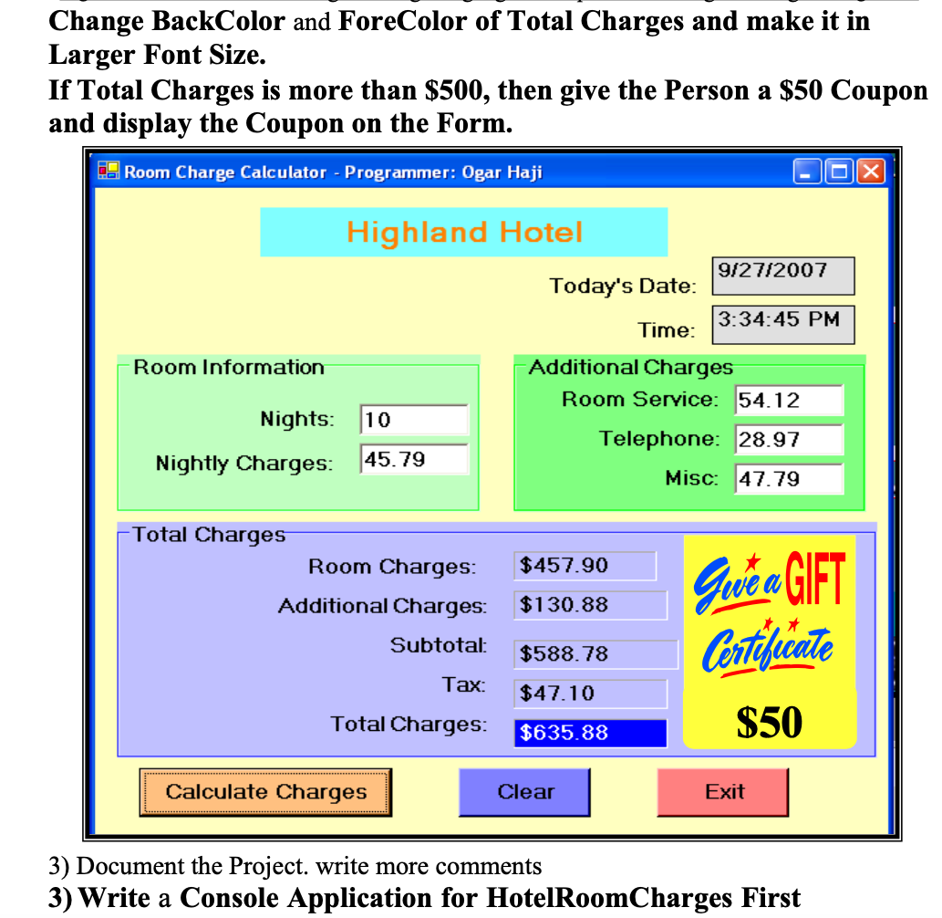 Solved Change BackColor and ForeColor of Total Charges and | Chegg.com