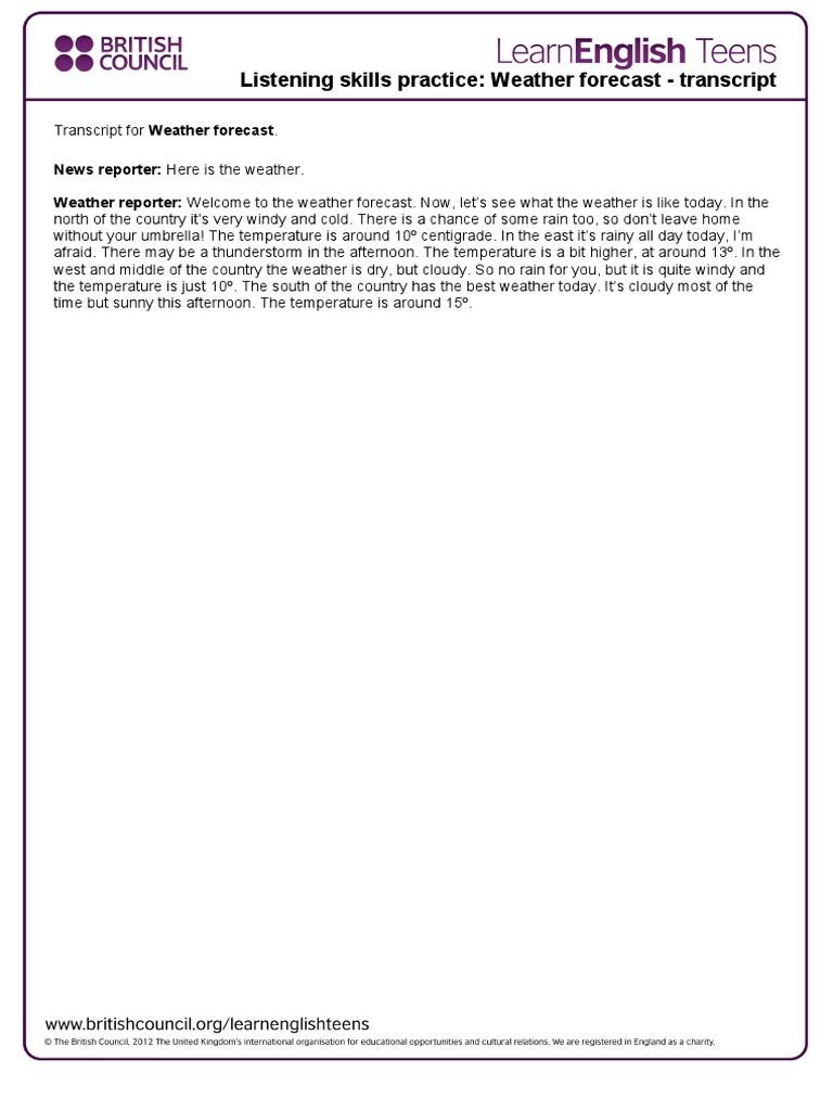 Weather Forecast - Transcript 2 | PDF | Language Arts & Discipline