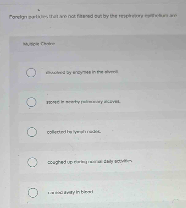 Solved: Foreign particles that are not filtered out by the respiratory ...