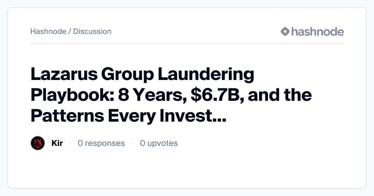 Discussion on "Lazarus Group Laundering Playbook: 8 Years, $6.7B, and ...