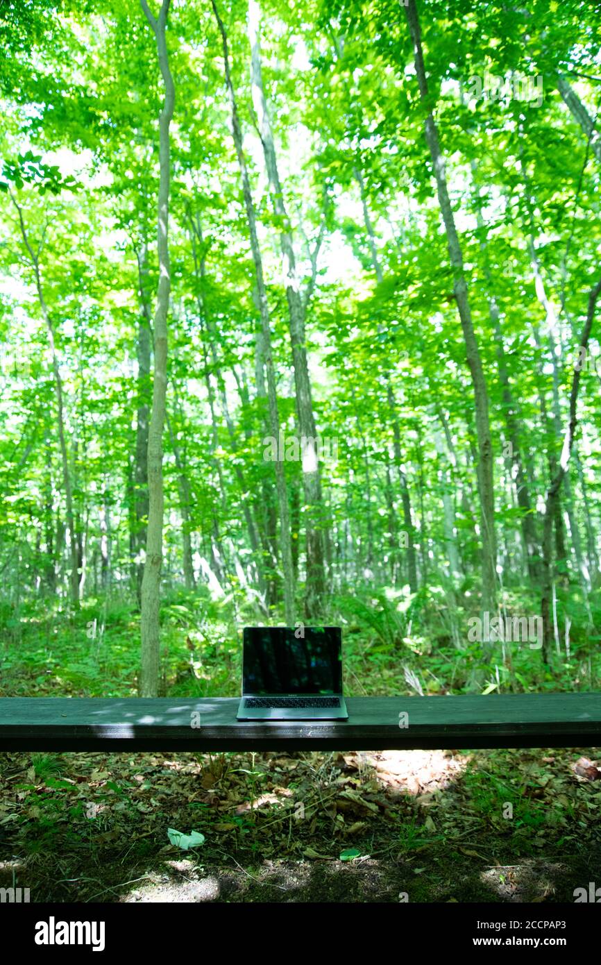 Laptop Computer in the Forest Stock Photo - Alamy