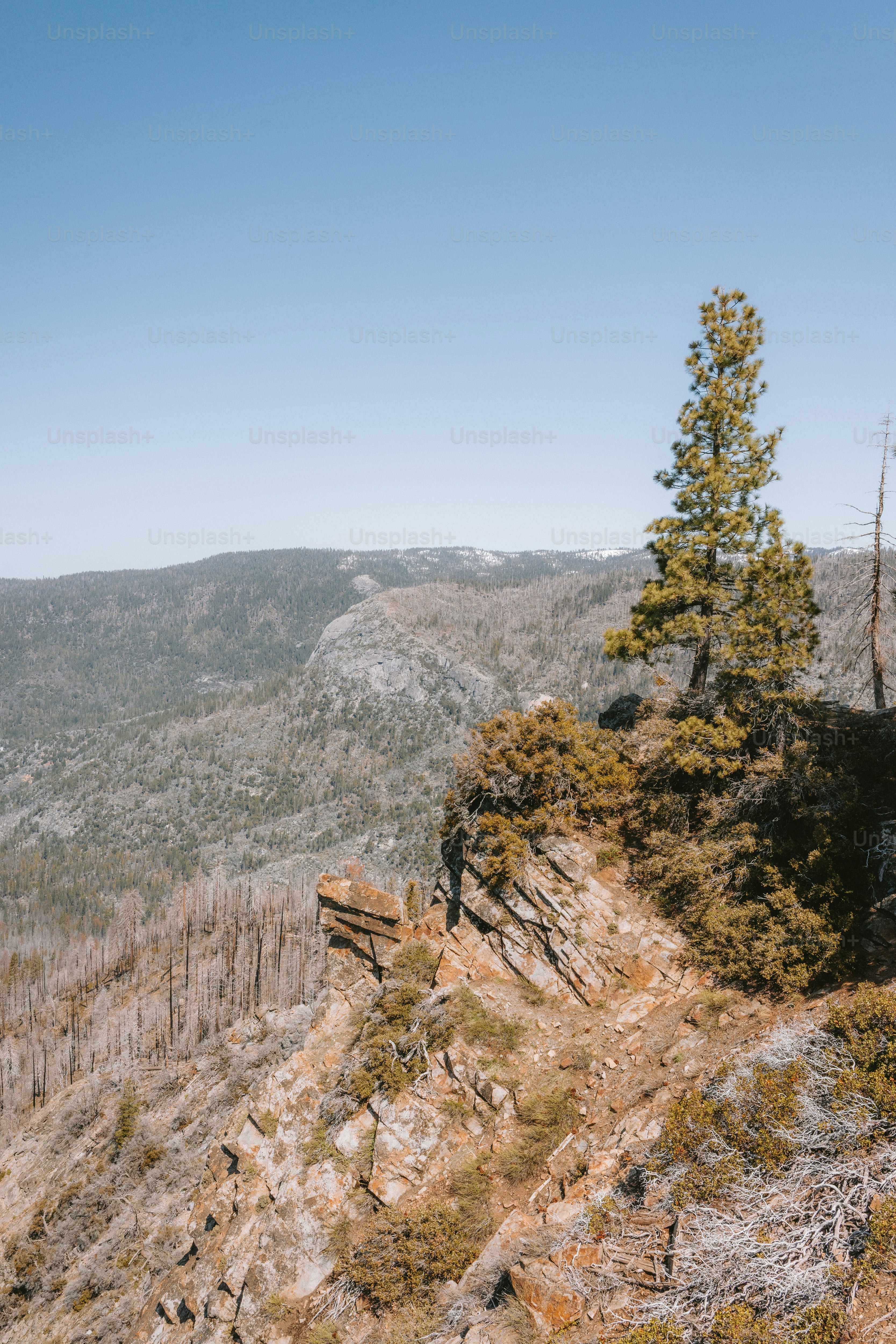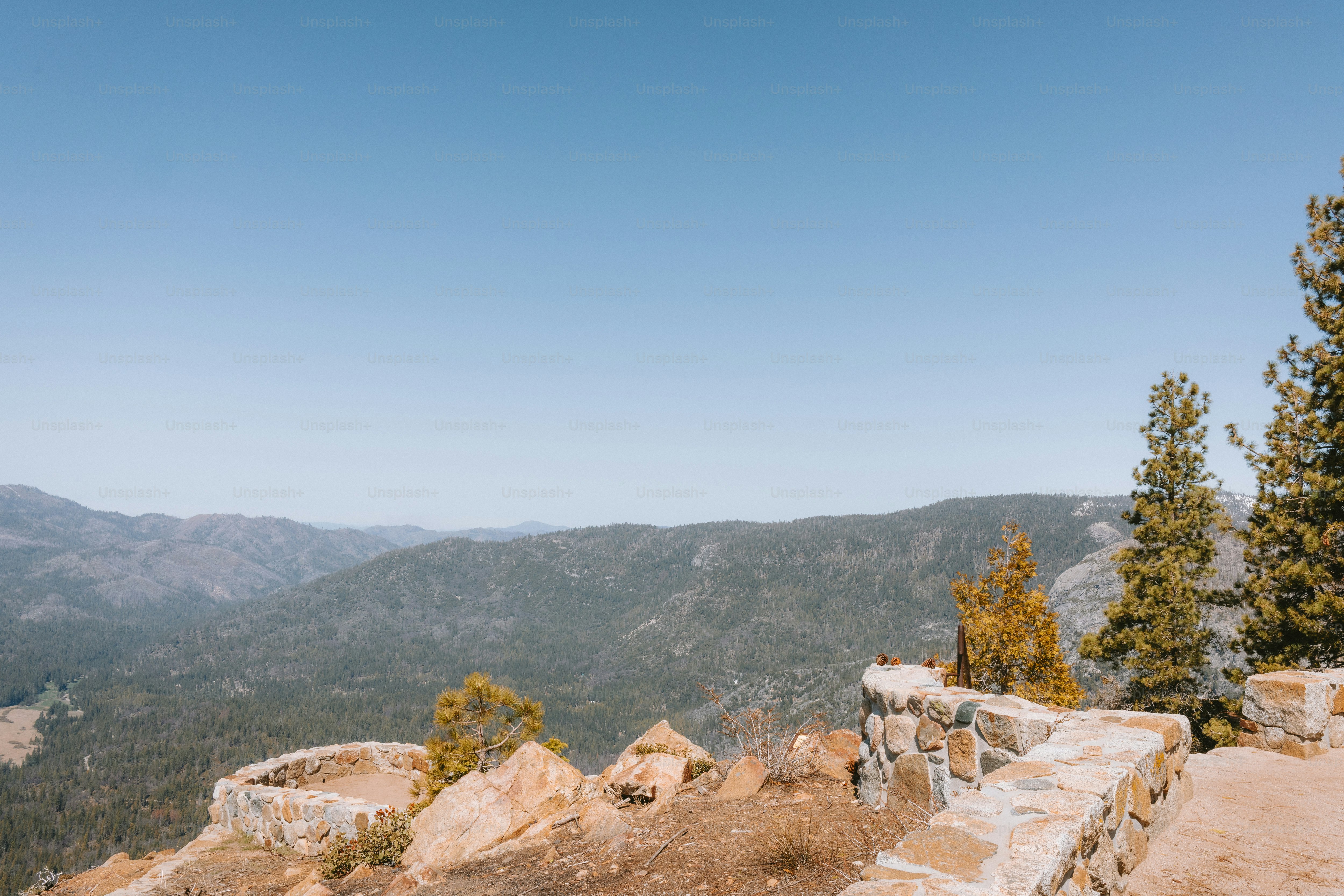 Montagne e foreste si estendono sotto un cielo blu. foto – Immagine di ...