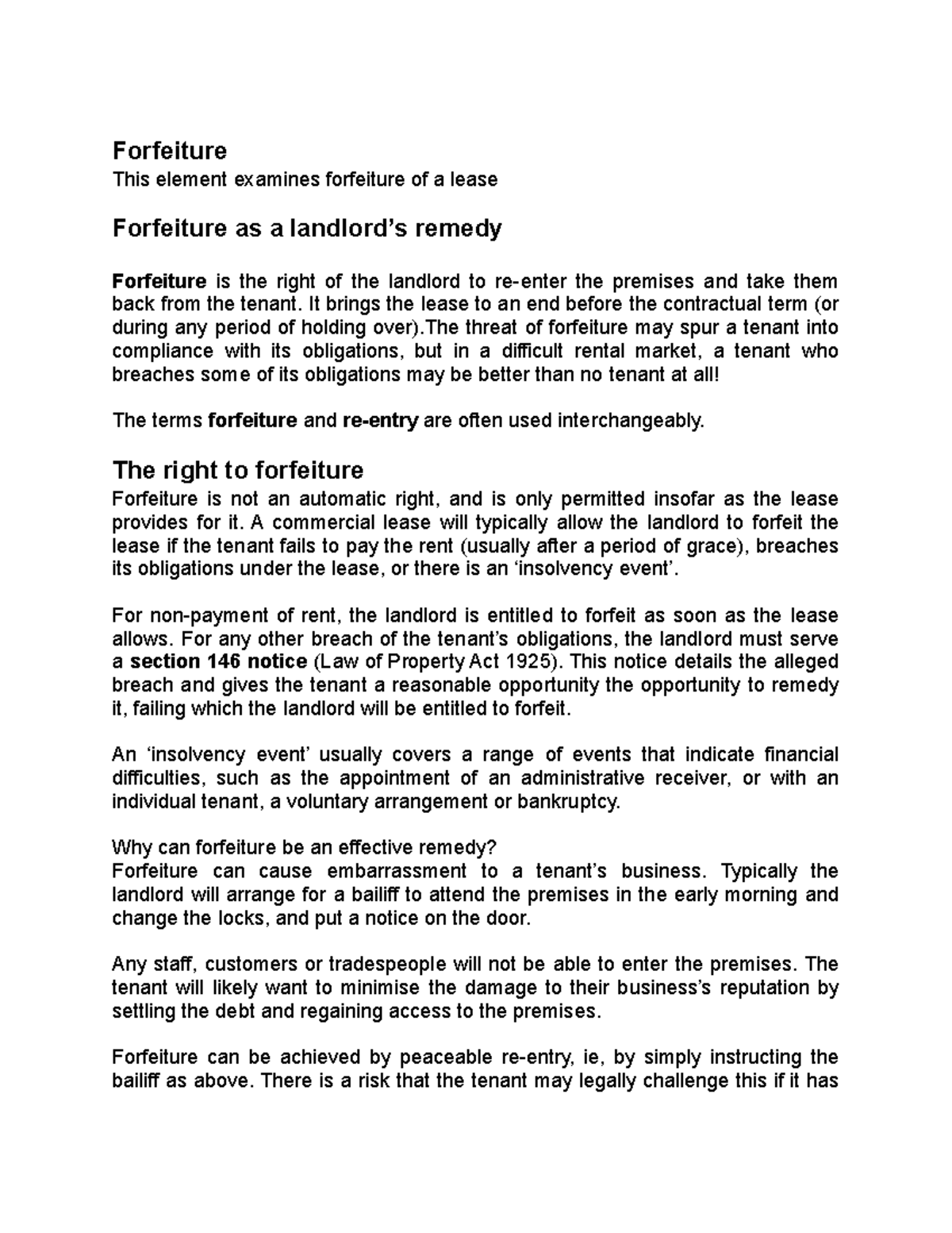 Draft - Forfeiture Notes - Lecture: Landlord and Tenant Forfeiture and ...