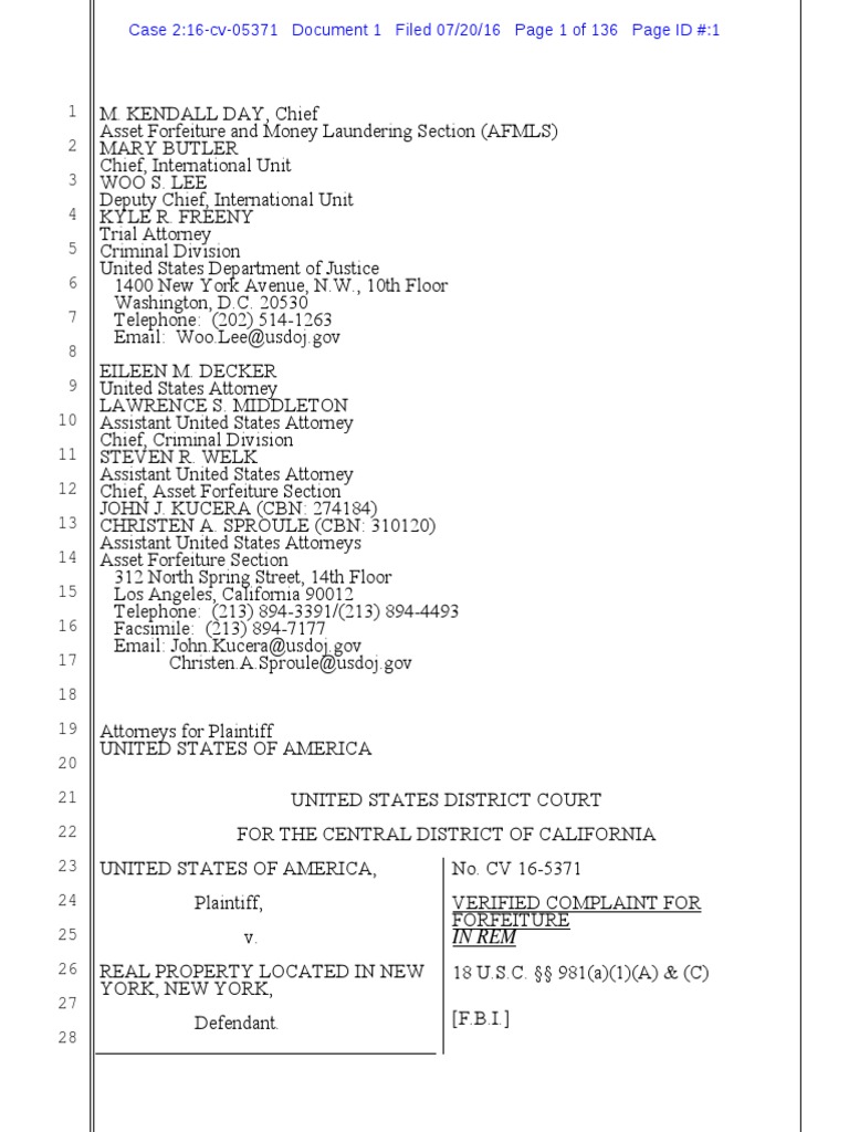 1MDB Civil Forfeiture Complaint | PDF | Joint Venture | Asset Forfeiture