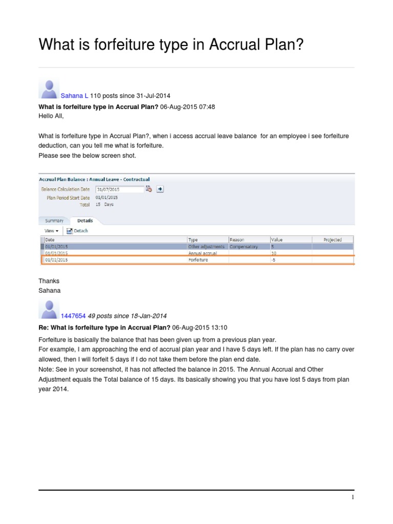 What Is Forfeiture Type in Accrual Plan?: Sahana L | PDF