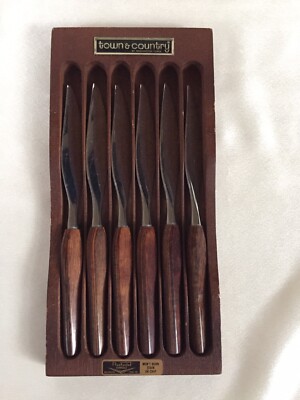 42 Piece Vintage TOWN & COUNTRY MCM Stainless USA Wood Handle ...