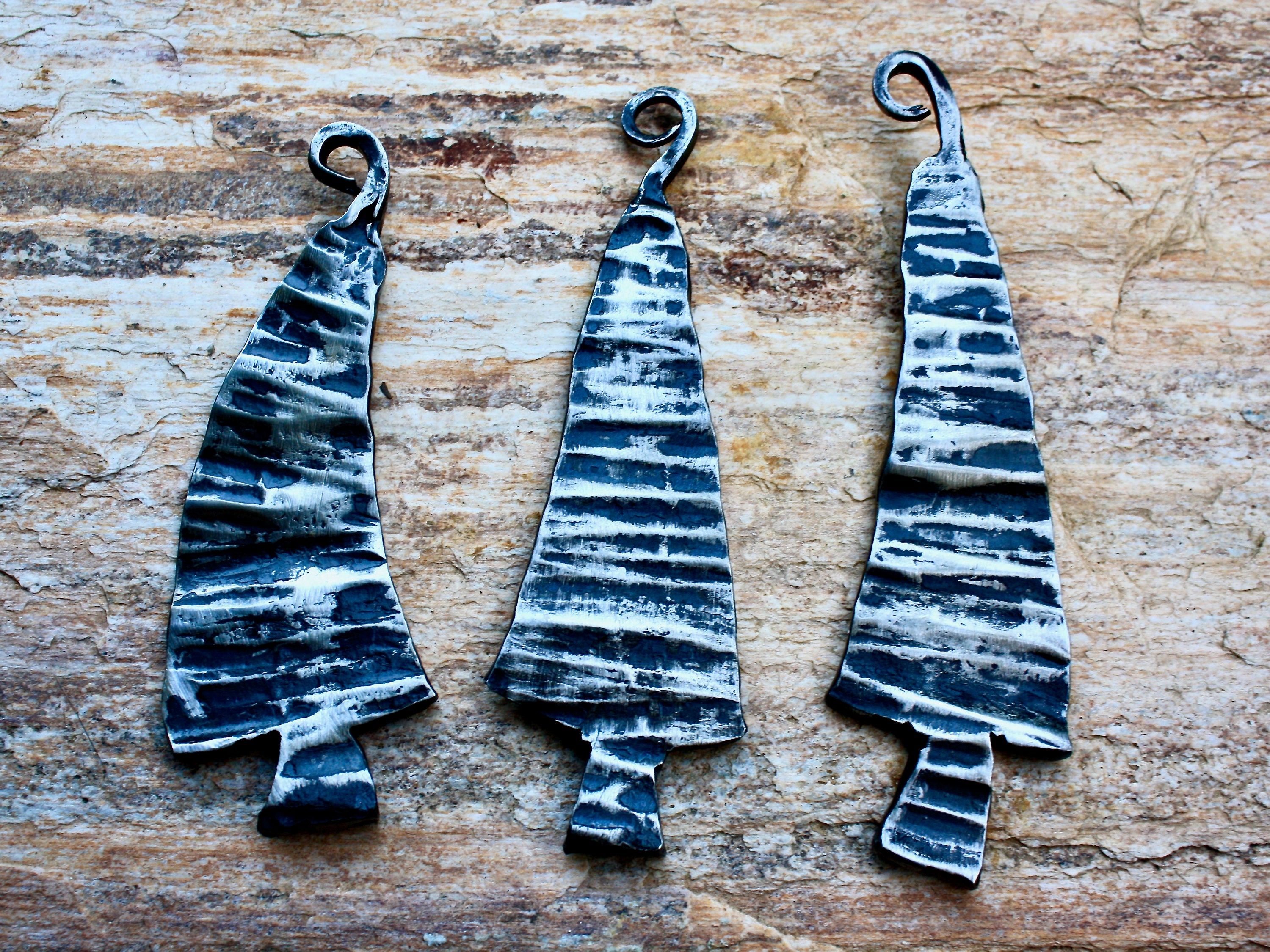 Set of three hand forged Christmas tree ornament | Etsy