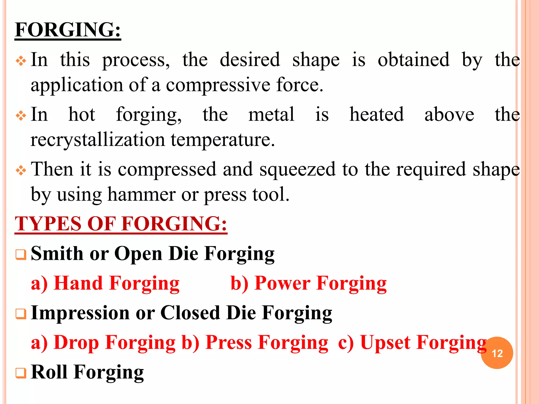 Compare Open die forging, Closed die forging, Press forging, Drop ...