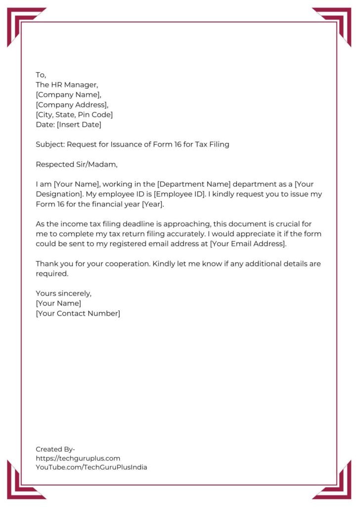 Application for Issuance of Form 16 for Tax Filing [5 Format]